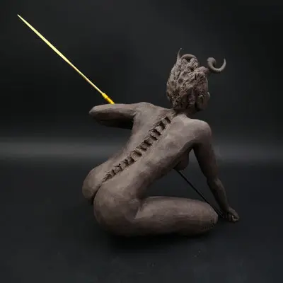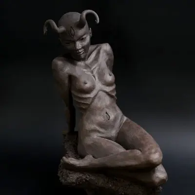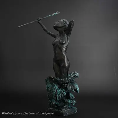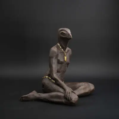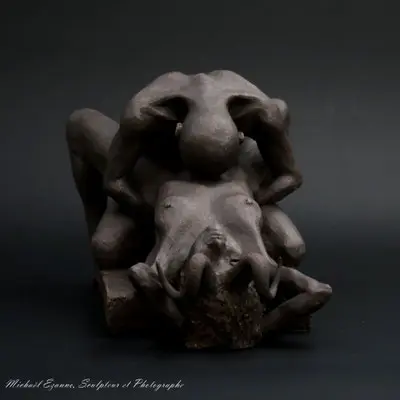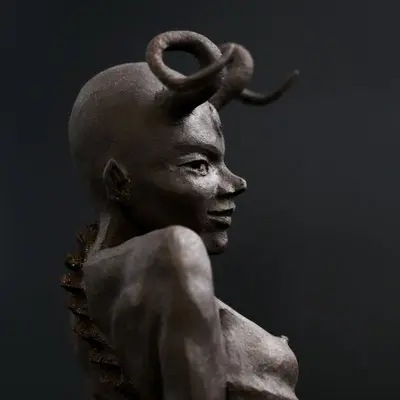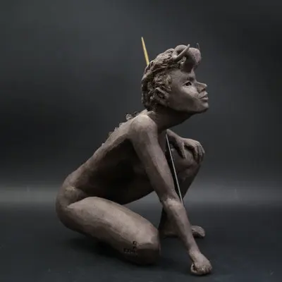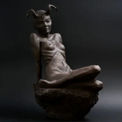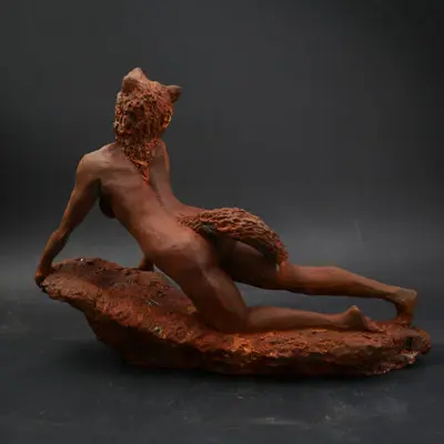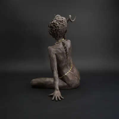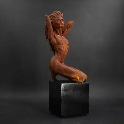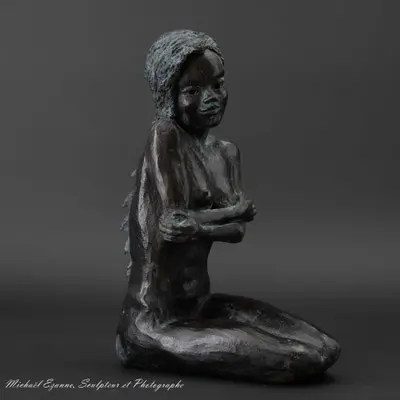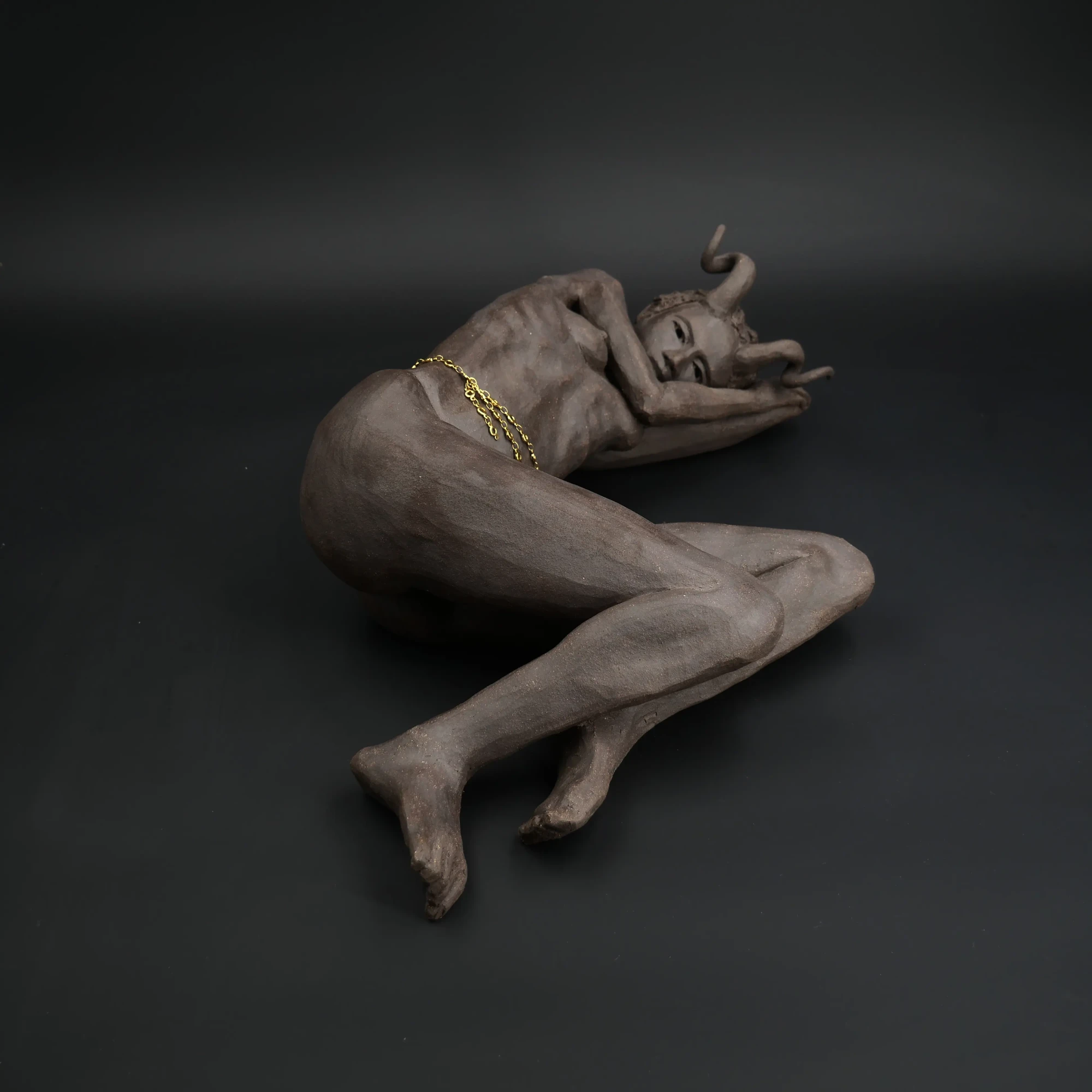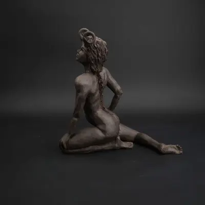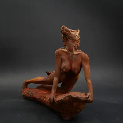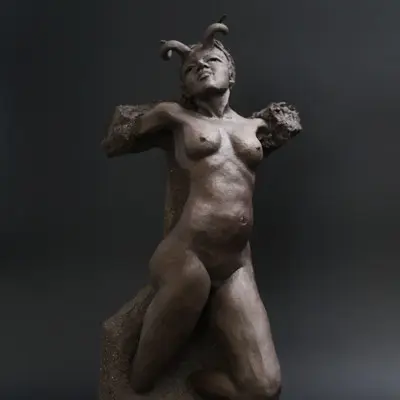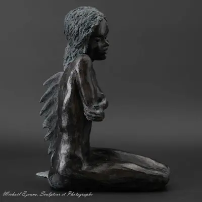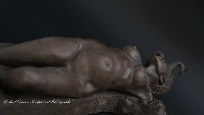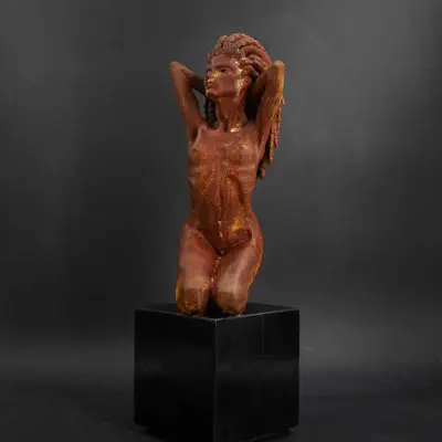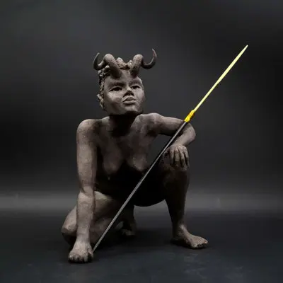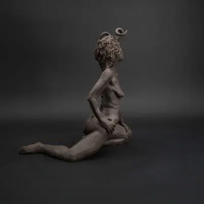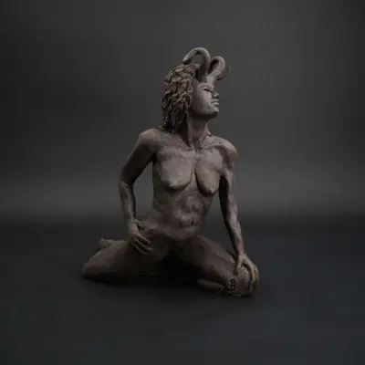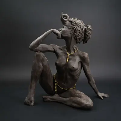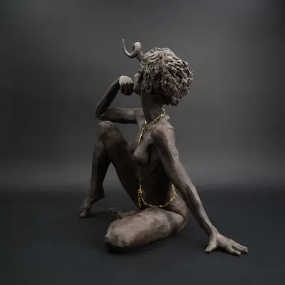 À travers ma sensibilité, mes yeux, mes mains, déesses, je vous ai façonnées dans la terre et vous expose au regard.