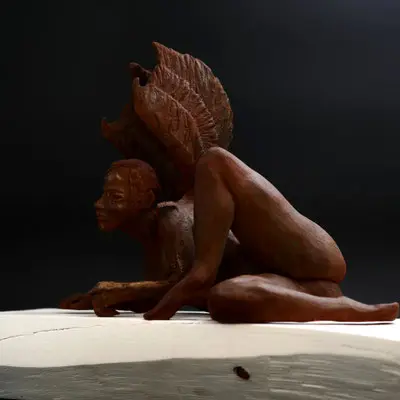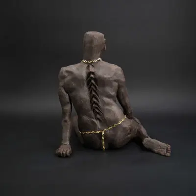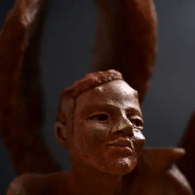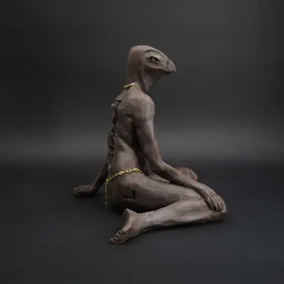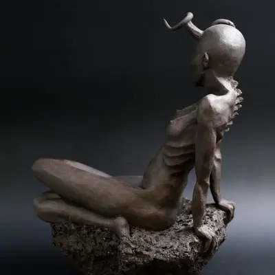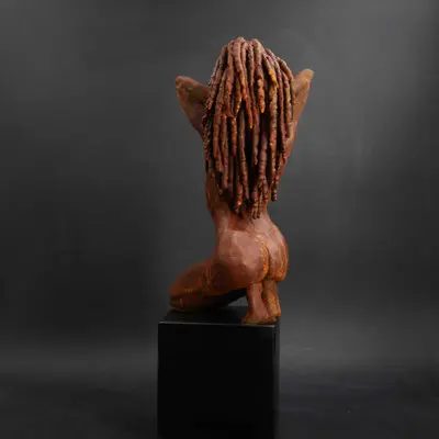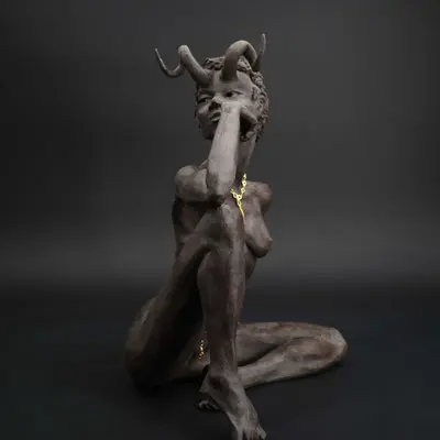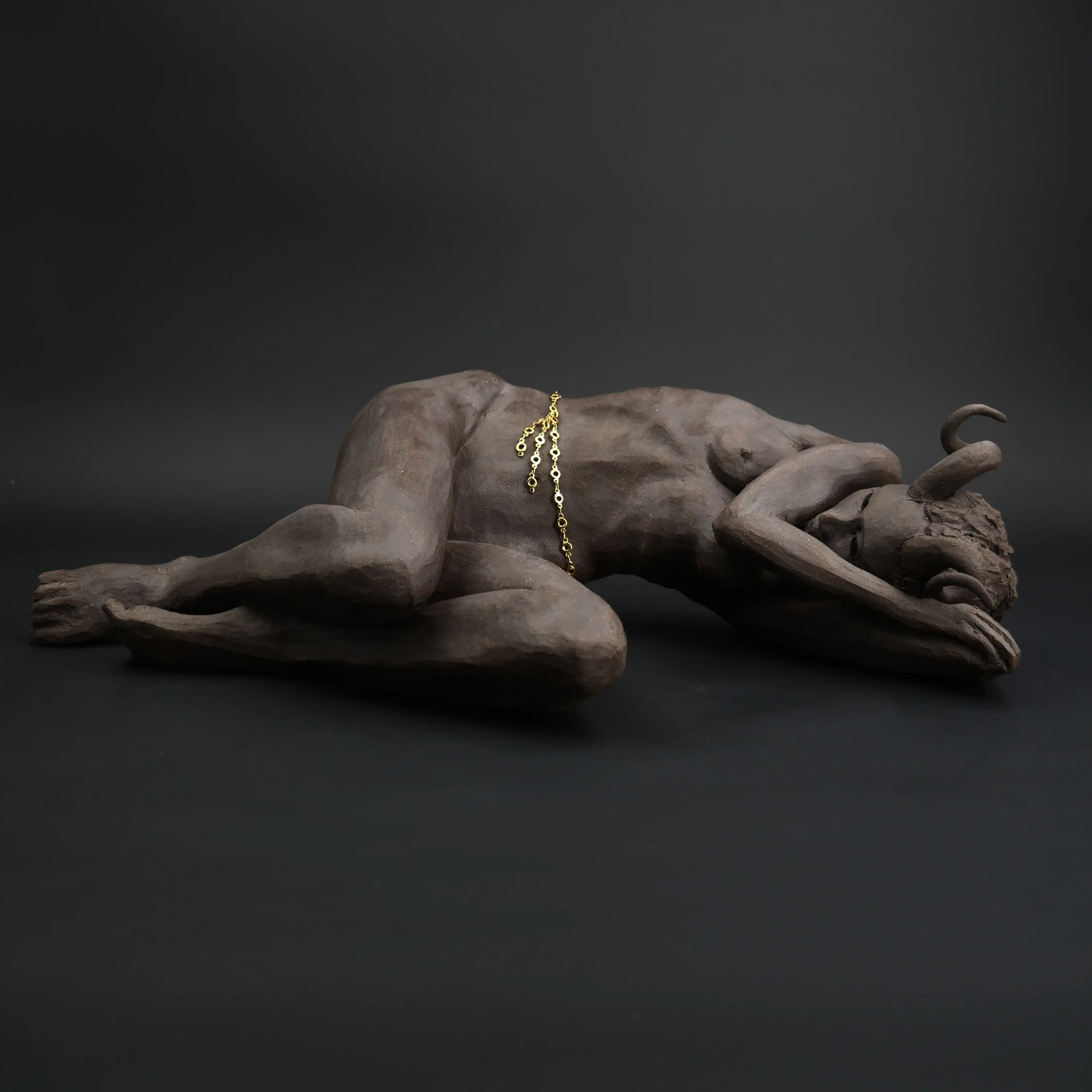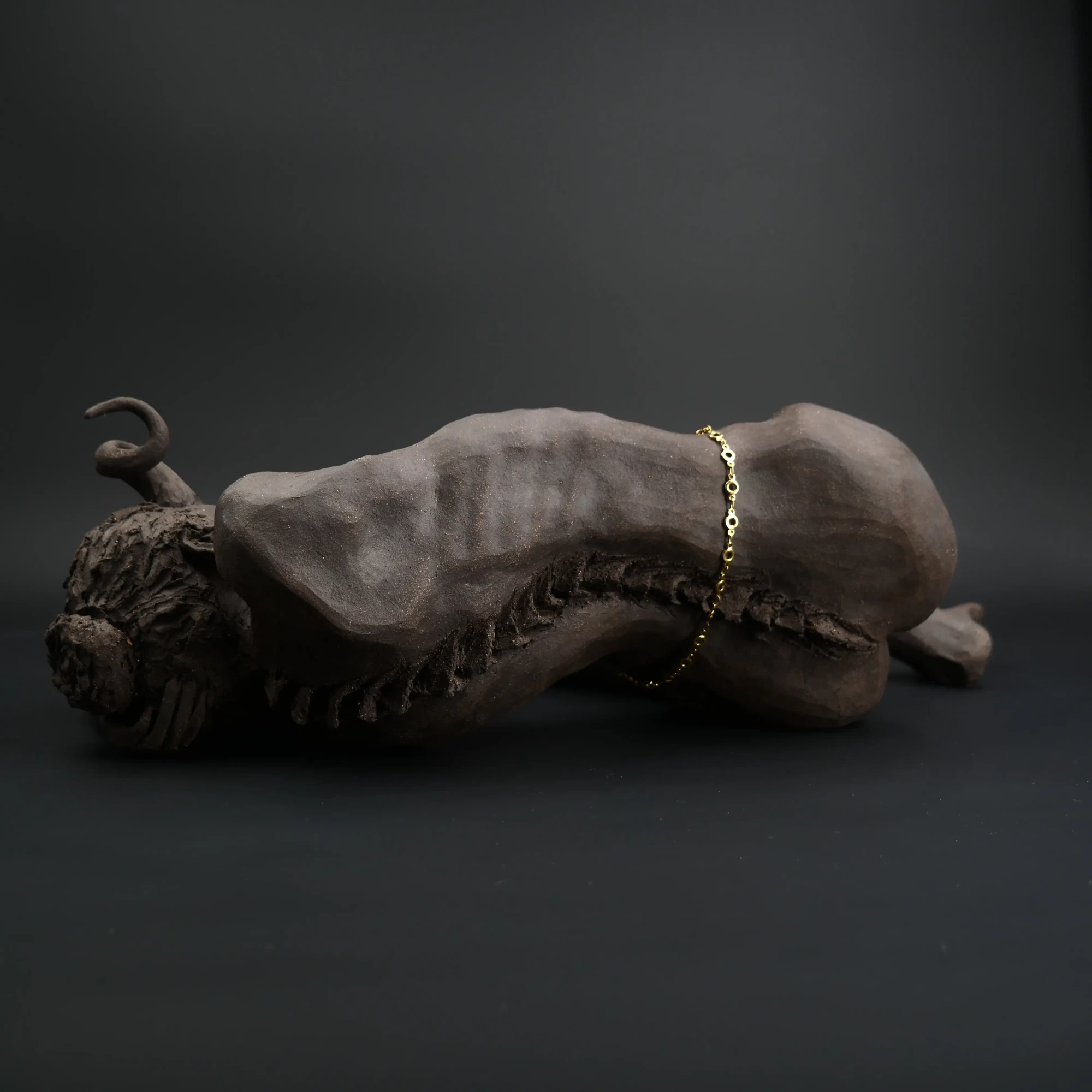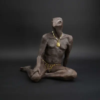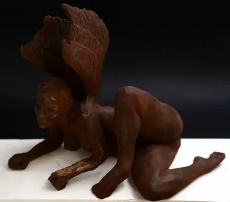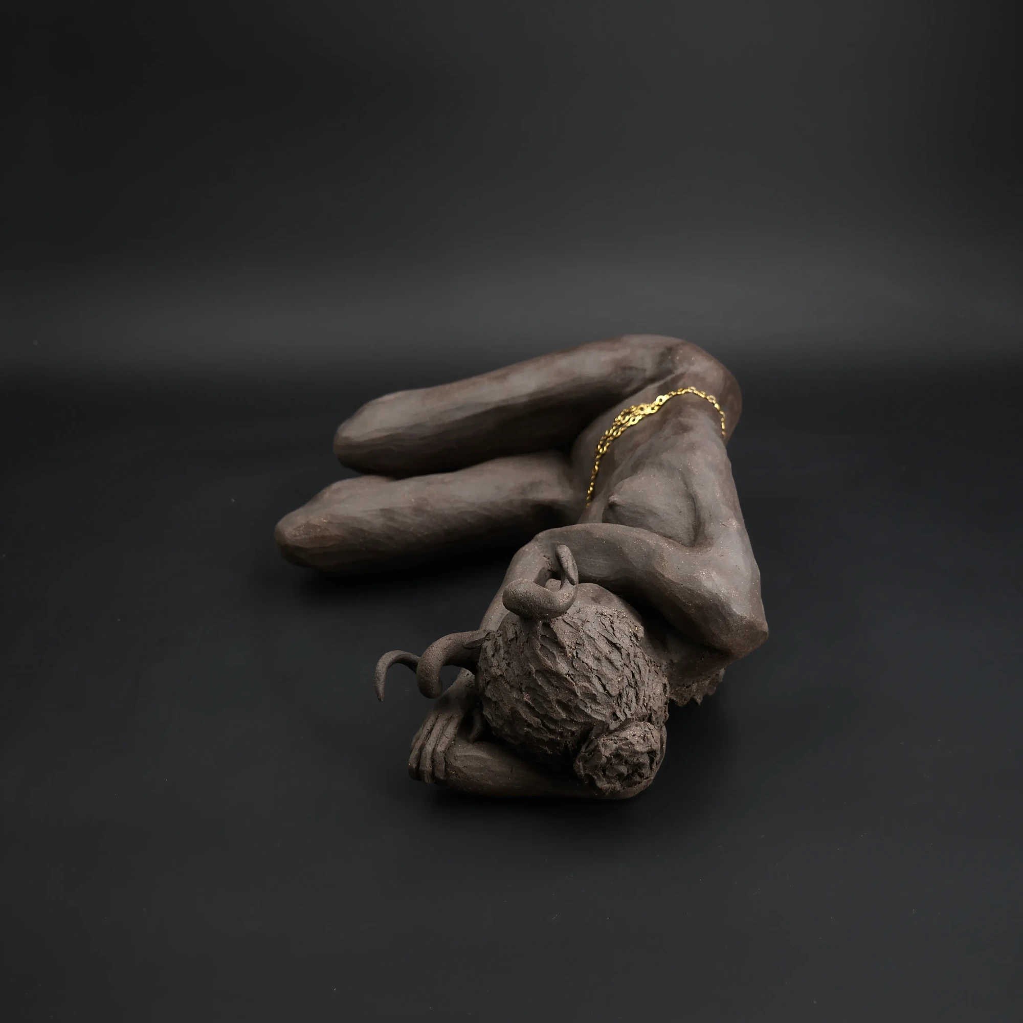 À travers ma sensibilité, mes yeux, mes mains, déesses, je vous ai façonnées dans la terre et vous expose au regard.